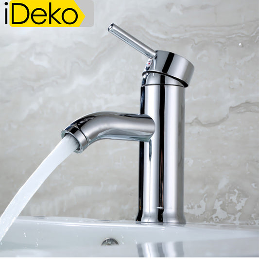 Robinet de salle de bain de lavabo style mono standard EU laiton ceramique chrome