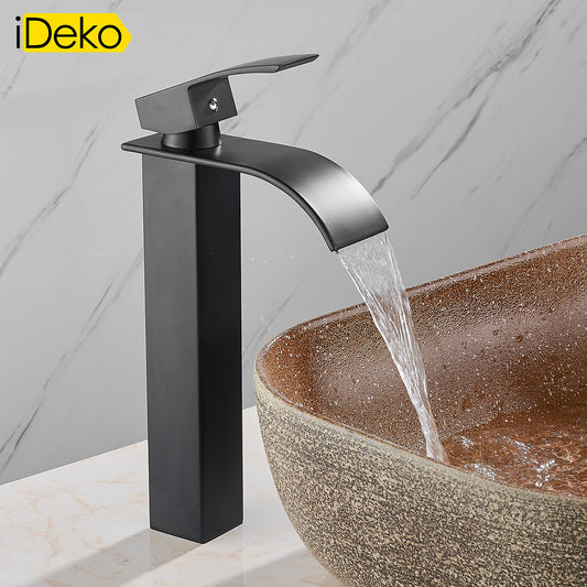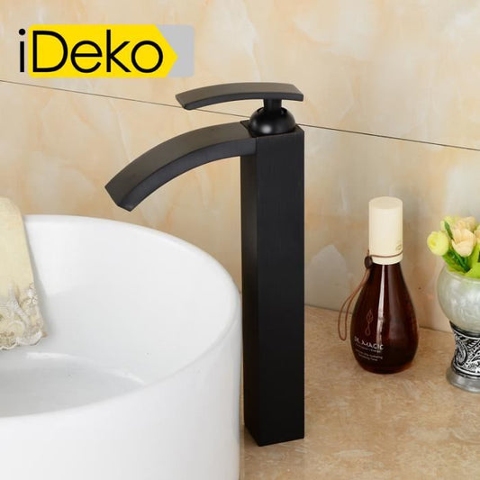 Robinet de salle de bain lavabo Mitigeur cascade Noir vasque evier haut