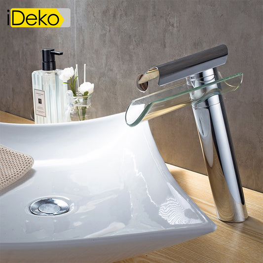 Robinet de salle de bain Mitigeur lavabo cascade haut de bec en verre