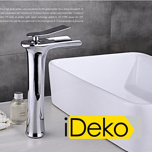 Robinet de lavabo Mitigeur cascade haut bec design moderne Laiton Ceramique chrome IDK3127 avec flexibles
