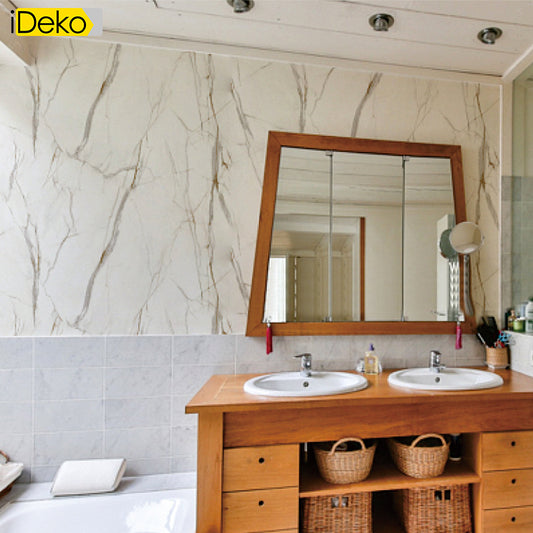 20 x Papier peint 3D Auto Adhesif a Effet Carrelage marbre Bricolage Cuisine salle de bain mural sol 30cmx60cm beige