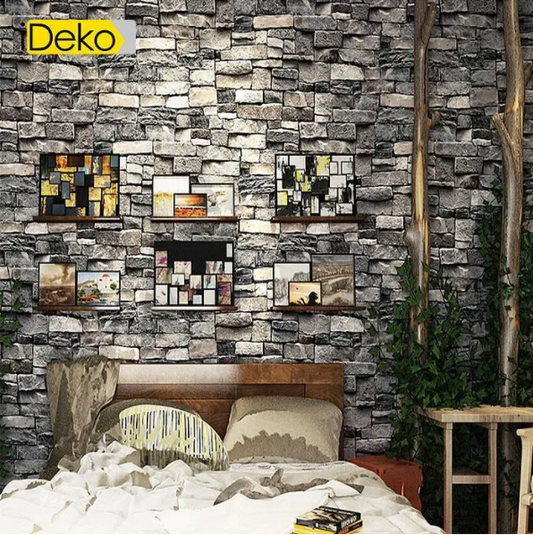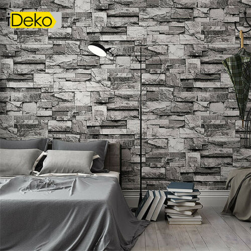 Retro 3D PVC Papier Peint Simulation Briques Antique Naturel Decoration Encre grise 10 0.53 (M)