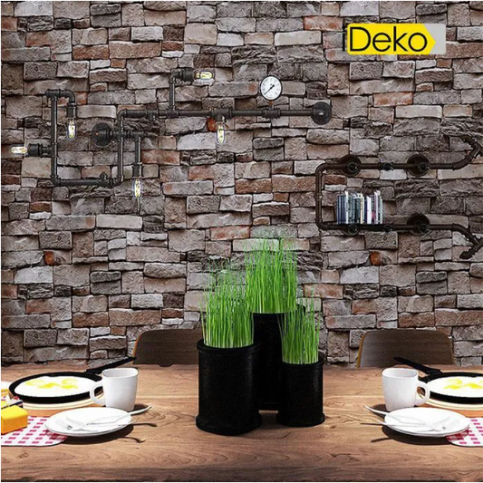 Retro 3D PVC Papier Peint Simulation Briques Antique Naturel Decoration Brun gris 10 0.53 (M)