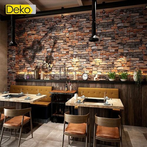 Retro 3D PVC Papier Peint Simulation Briques Antique Naturel Decoration Noir 10 0.53 (M)